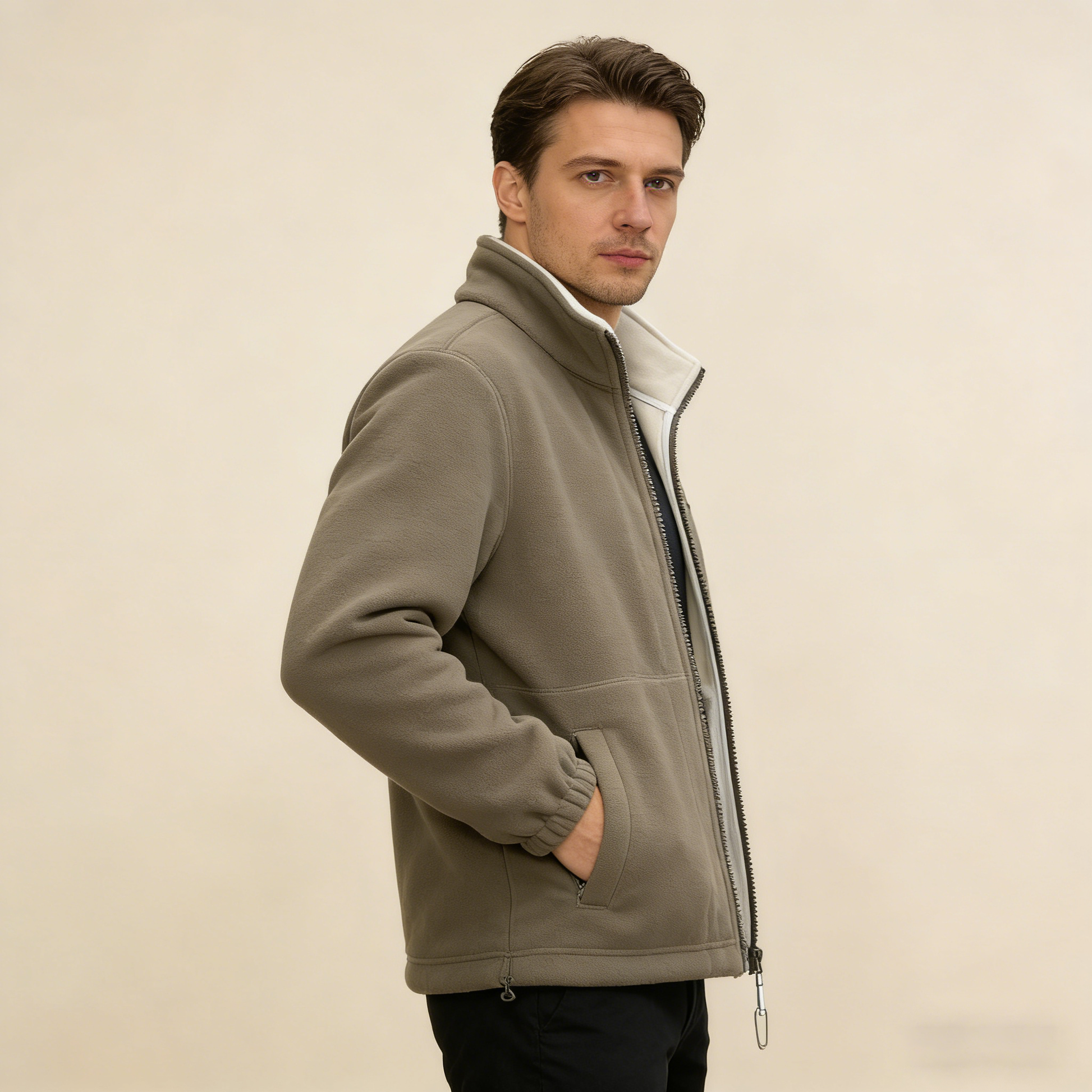 Ανδρικό παλτό από χοντρό μάλλινο fleece, ζεστό και άνετο