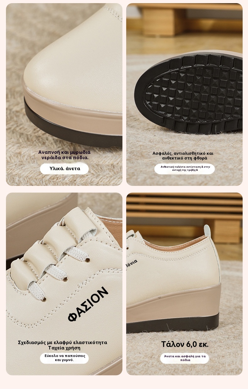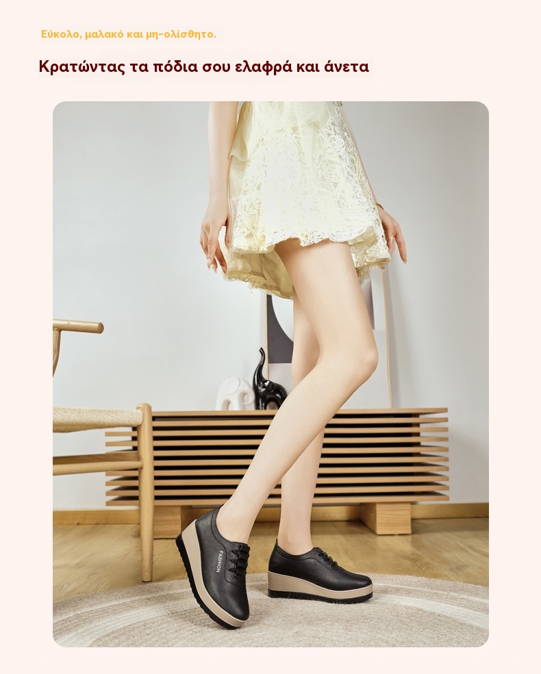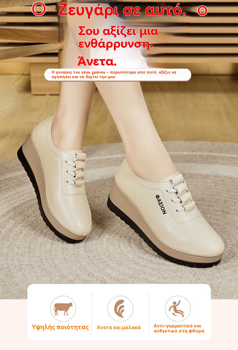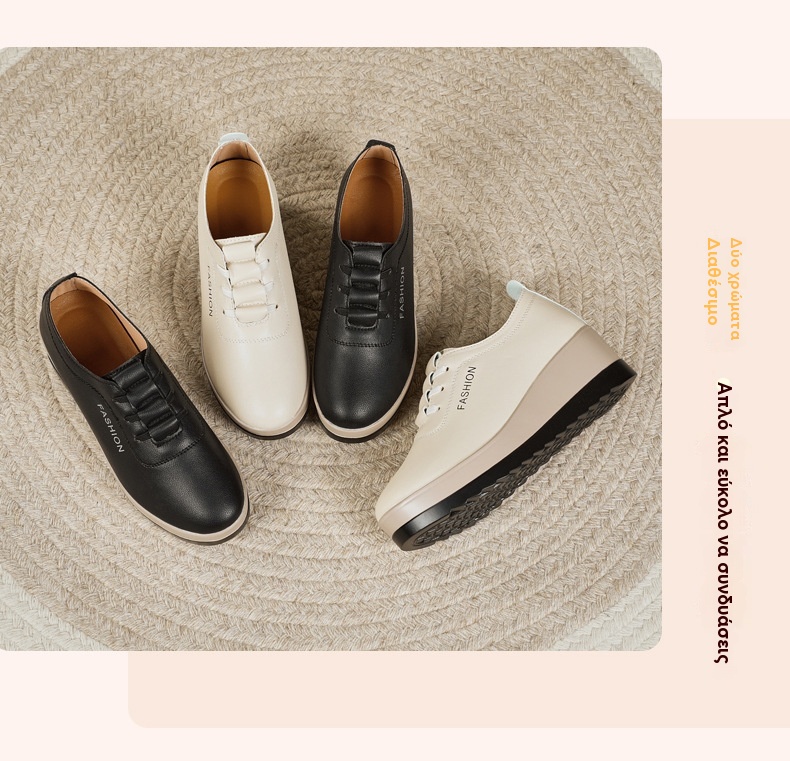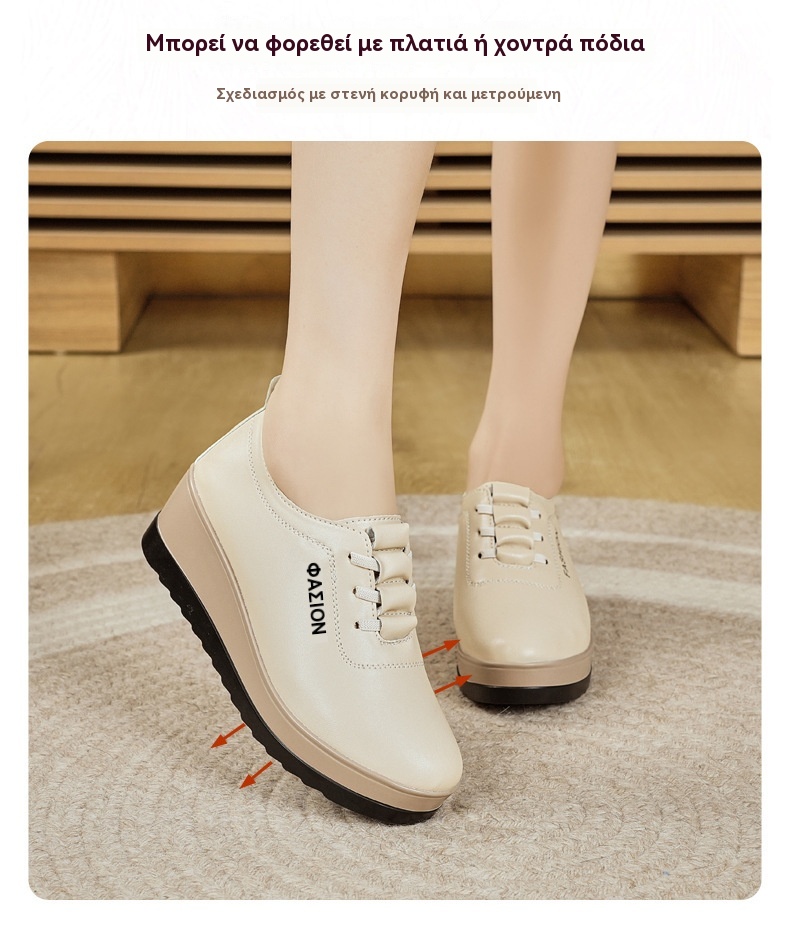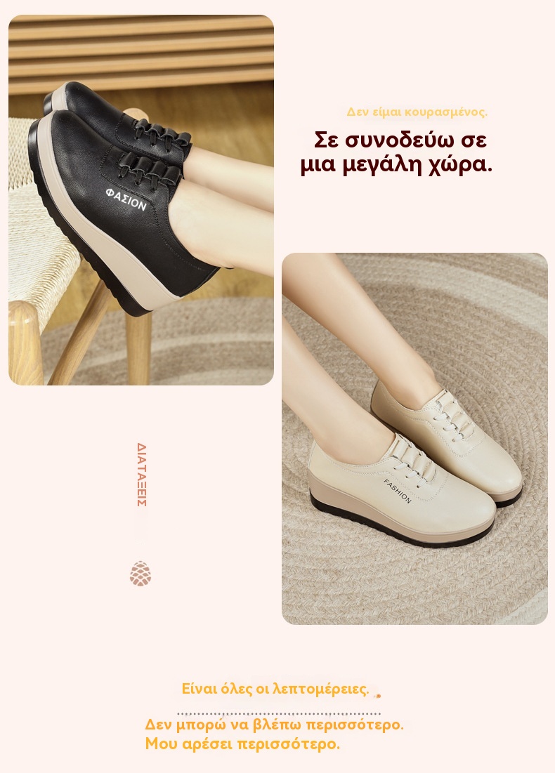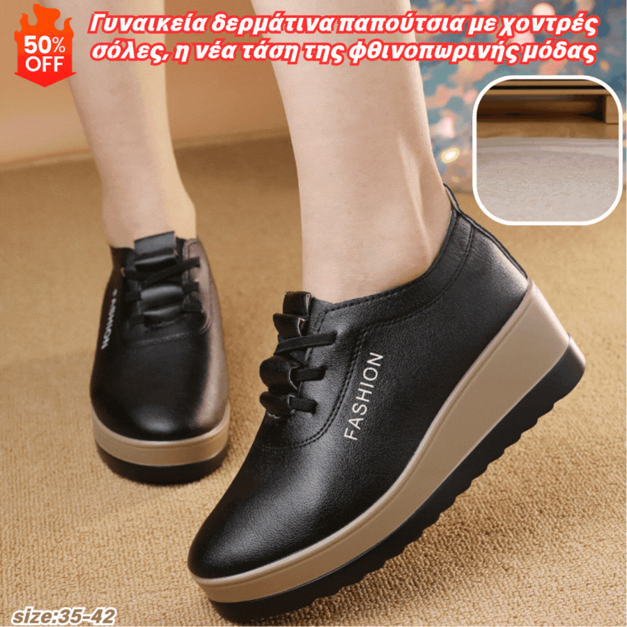 💥【Μεγάλες πωλήσεις】Γυναικεία δερμάτινα παπούτσια με χοντρές σόλες