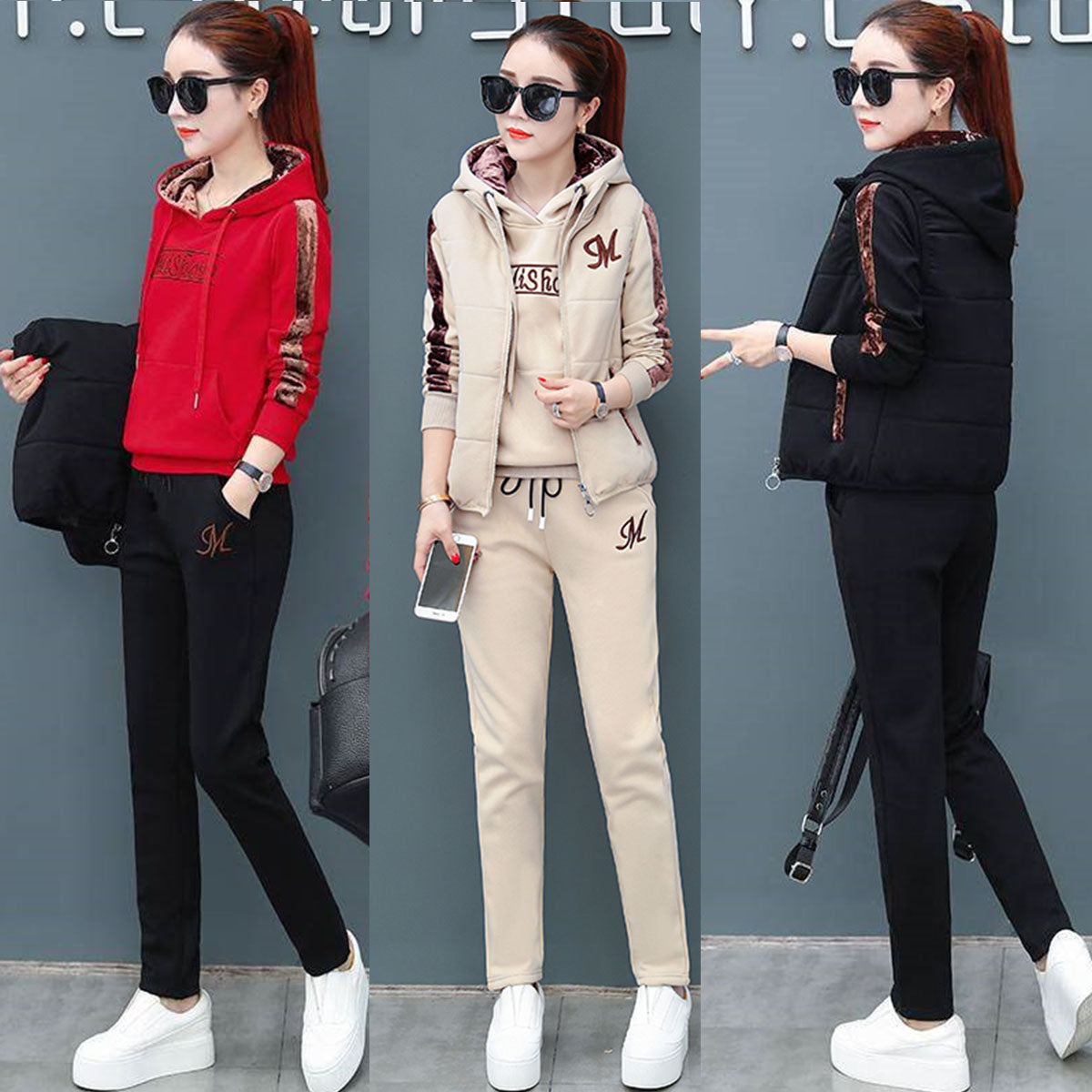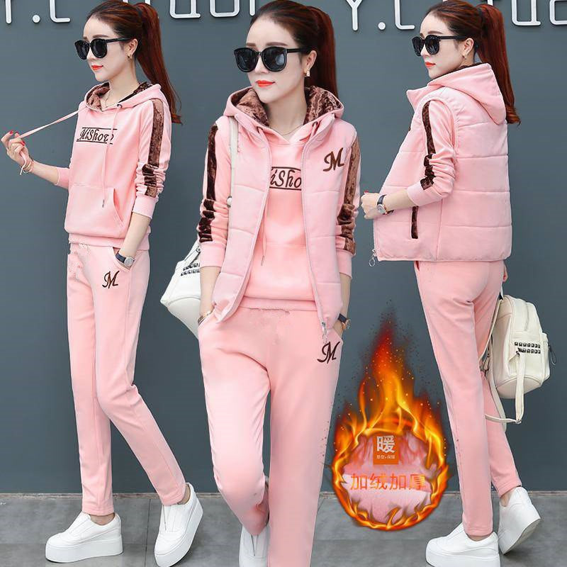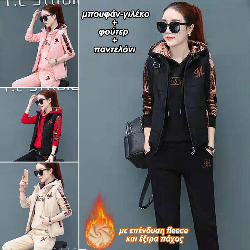 🔥【Παντελόνι + Φούτερ + Γιλέκο】Νέο Στυλ Γυναικείου Ζεστού Βελούδινου Κοστουμιού για Αθλητισμό και Αναψυχή